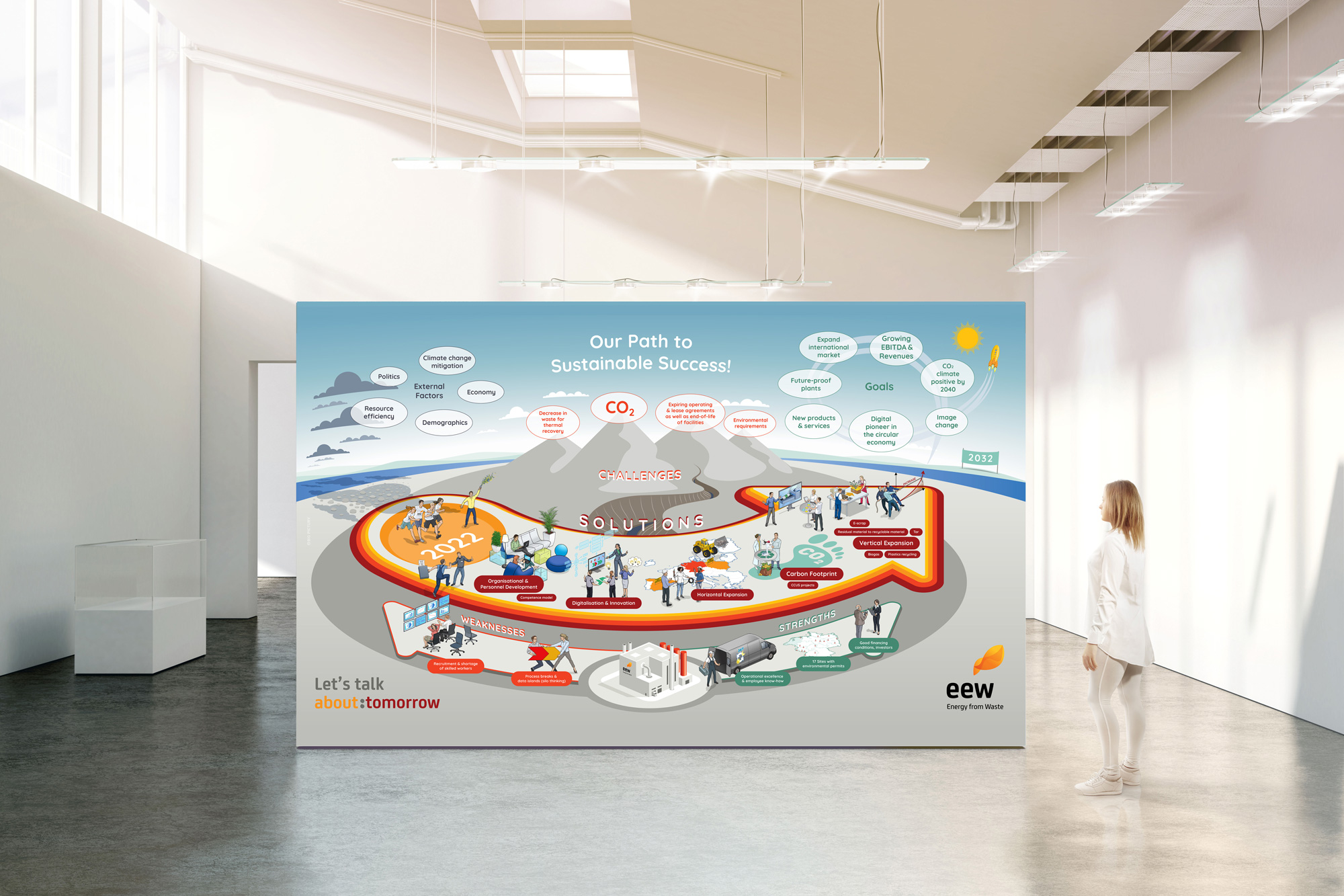 - Nachhaltige Verankerung: Unsere visuellen Lösungen werden in Meetings, Trainings und Kommunikation effektiv eingesetzt.