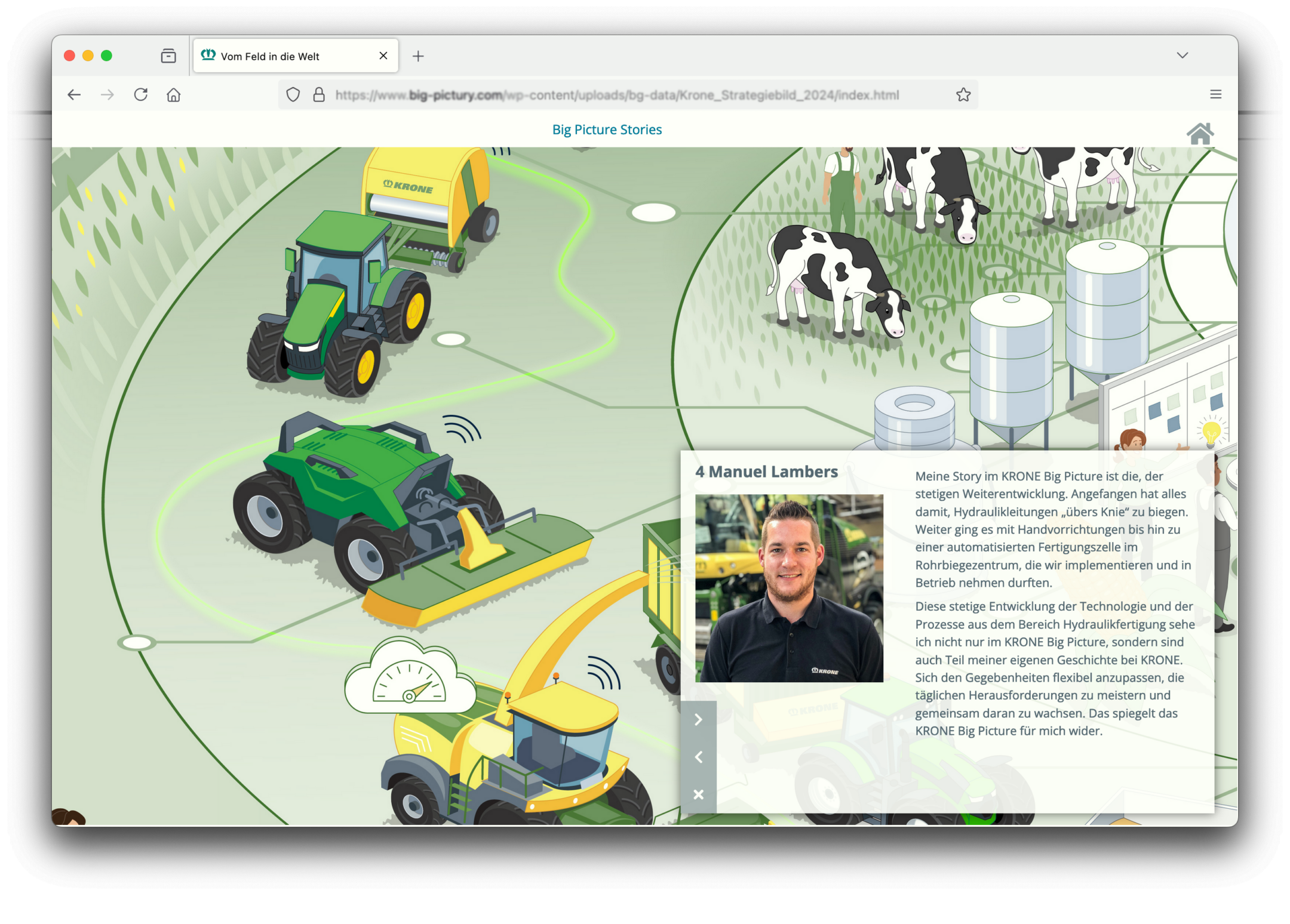 Ein interaktives Tool mit Klickpunkten, die Textfelder, Fotos, PDFs, Videos oder Links öffnen. Es verwandelt Euer Big Picture in eine visuelle Wissensoberfläche und ist ideal für Websites oder Touch-Monitore.