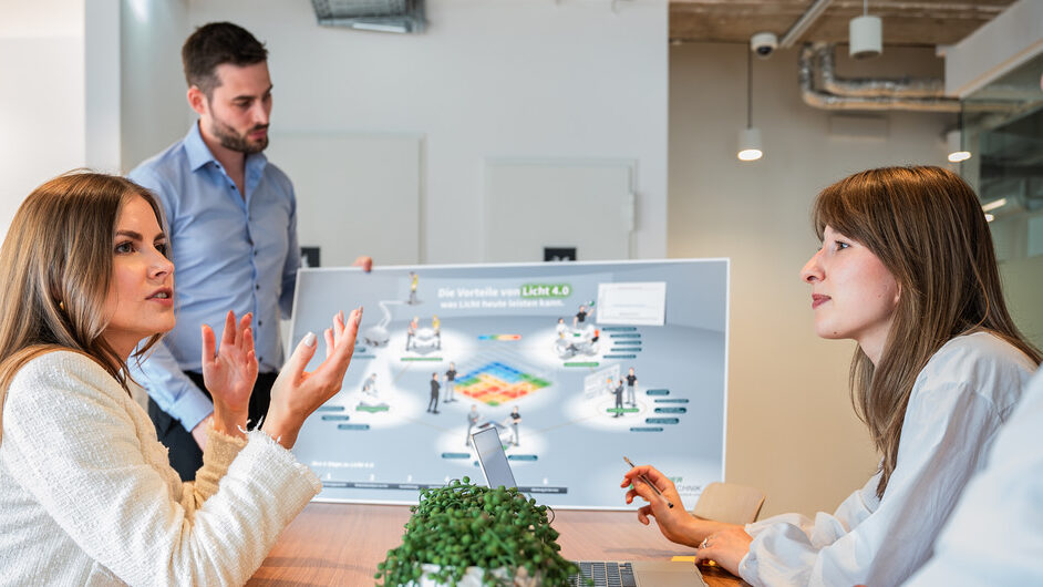 Das Big Picture im Großformat – ein Blickfang und immer präsent. Ob als Wandgestaltung oder zentrales Element in Besprechungsräumen: Es regt zum Austausch an und macht Botschaften erlebbar. Wir bieten verschiedene Materialien und Formate an oder stellen hochauflösende Druckdaten bereit.