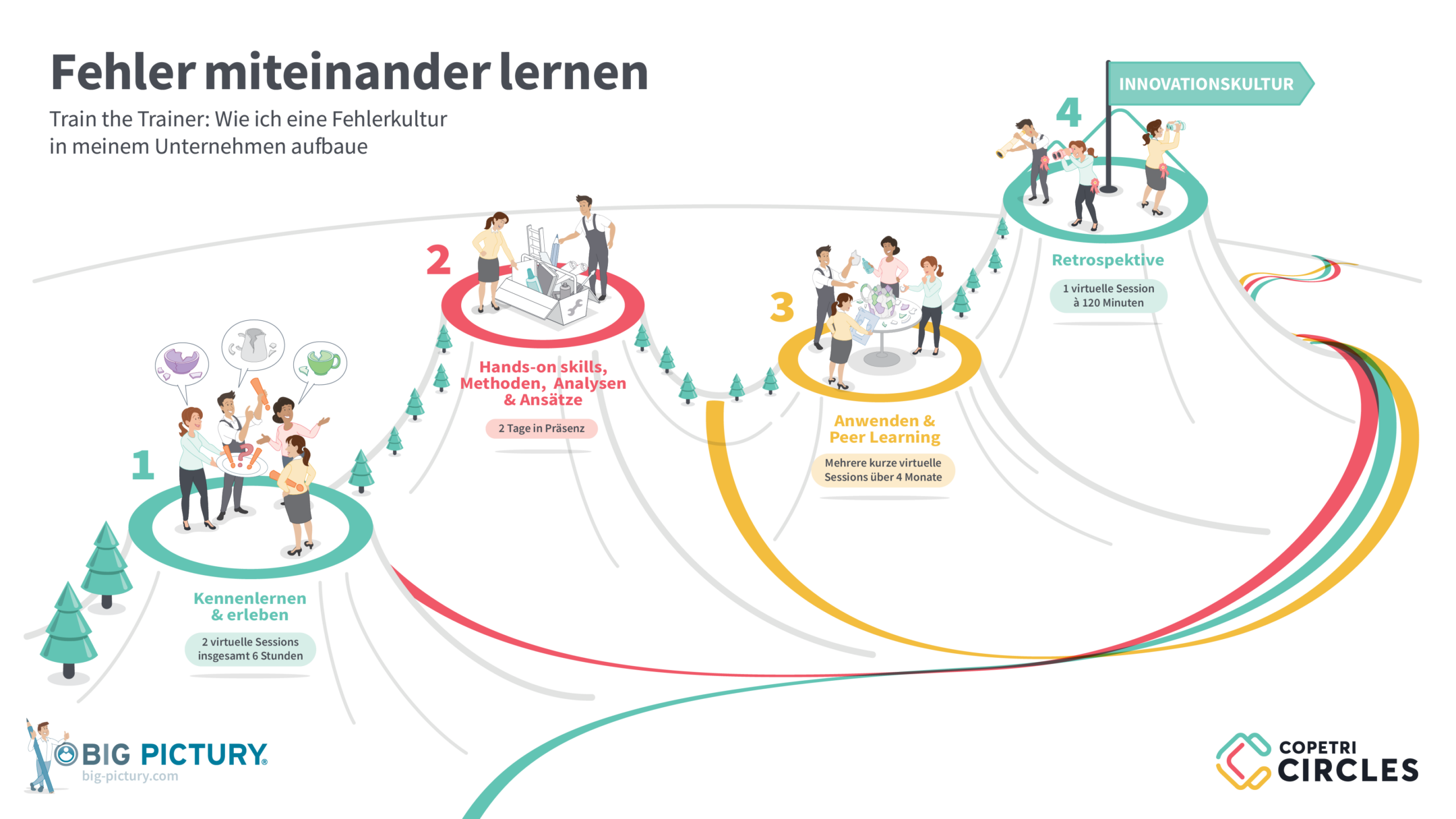 The COPETRI Circle New Work/Error Culture focuses on promoting a new positive perspective on mistakes and developing recommendations for action for companies to enable rapid learning and further development. We have developed an overview path for the Train the Trainer programme created in this context.