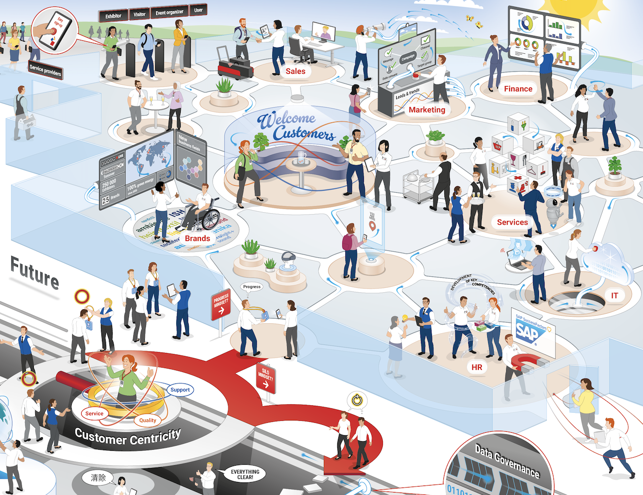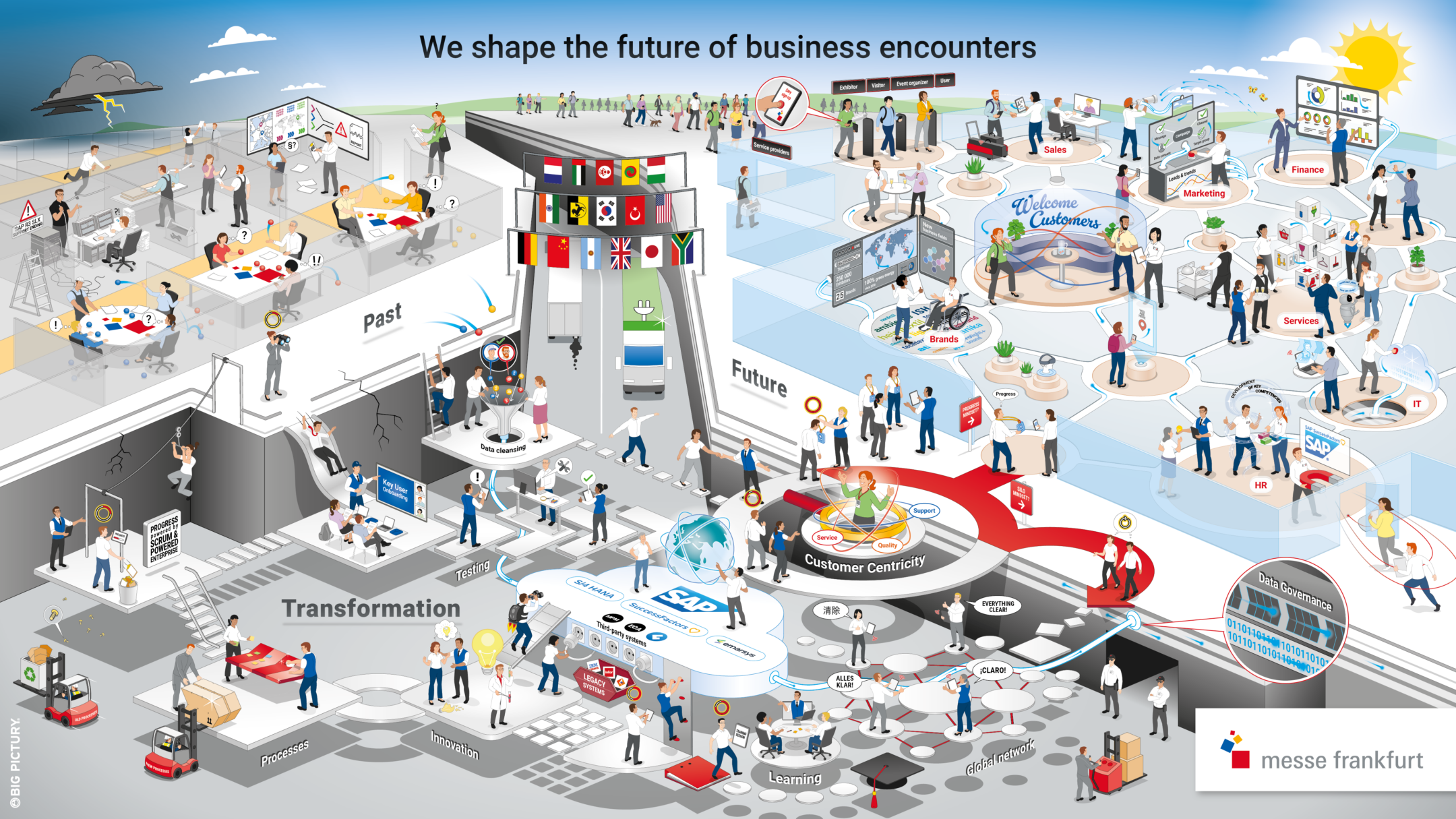“The Big Picture for the transformation of Messe Frankfurt is a key instrument for our change. It helps us to make the complex changes understandable and tangible for all employees and creates a positive attitude towards the changes. The visualization shows what improvements the transformation will bring for each individual and how Messe Frankfurt is developing as a company. The Big Picture will give our employees clarity and support us in shaping this path together as a team and actively shaping the future.”