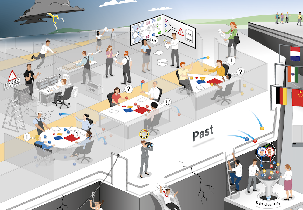 This area visualizes the initial situation and the need for transformation, triggered by an imminent technical system renewal. This chapter illustrates the need for change.