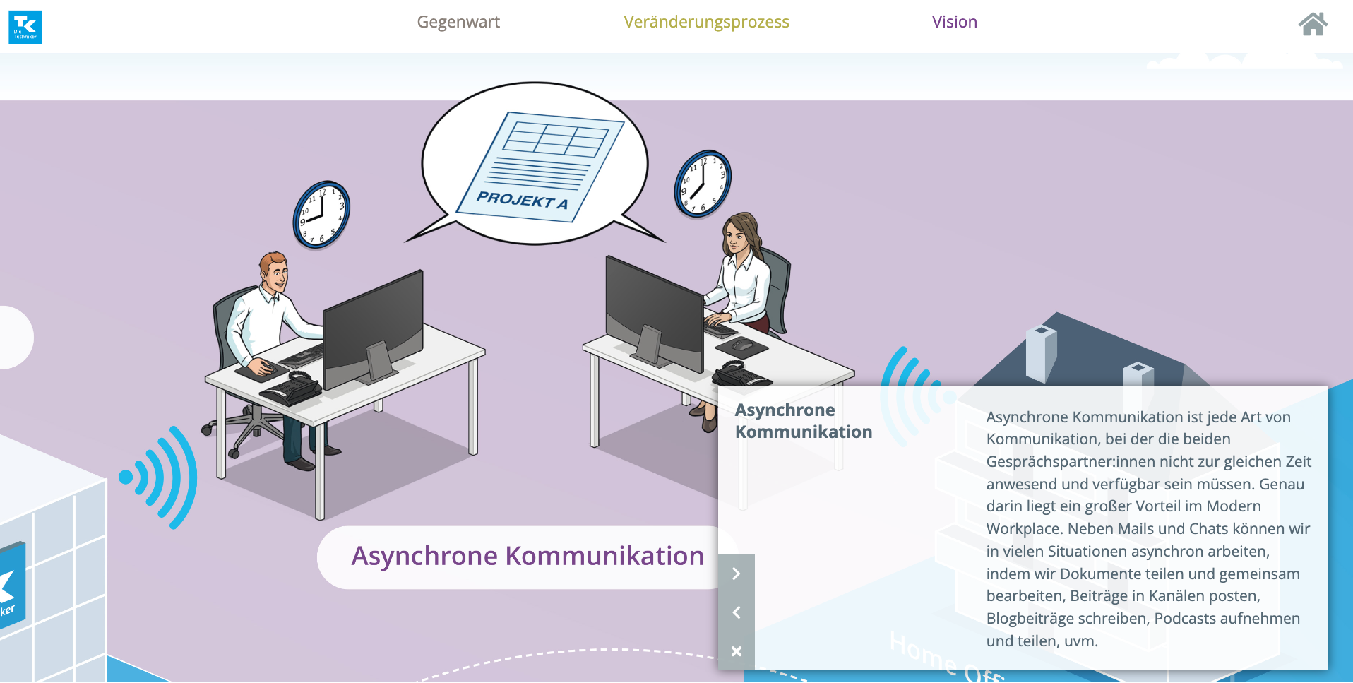 This change requires all employees to be particularly open to the changes, as well as willing to be more proactive and constantly learn. In order to communicate the change in the company in all its facets to all employees and to motivate them for it, Die Techniker decided to cooperate with Big Pictury as an additional flanking measure for the internal communication of the “Modern Workplace” project.
