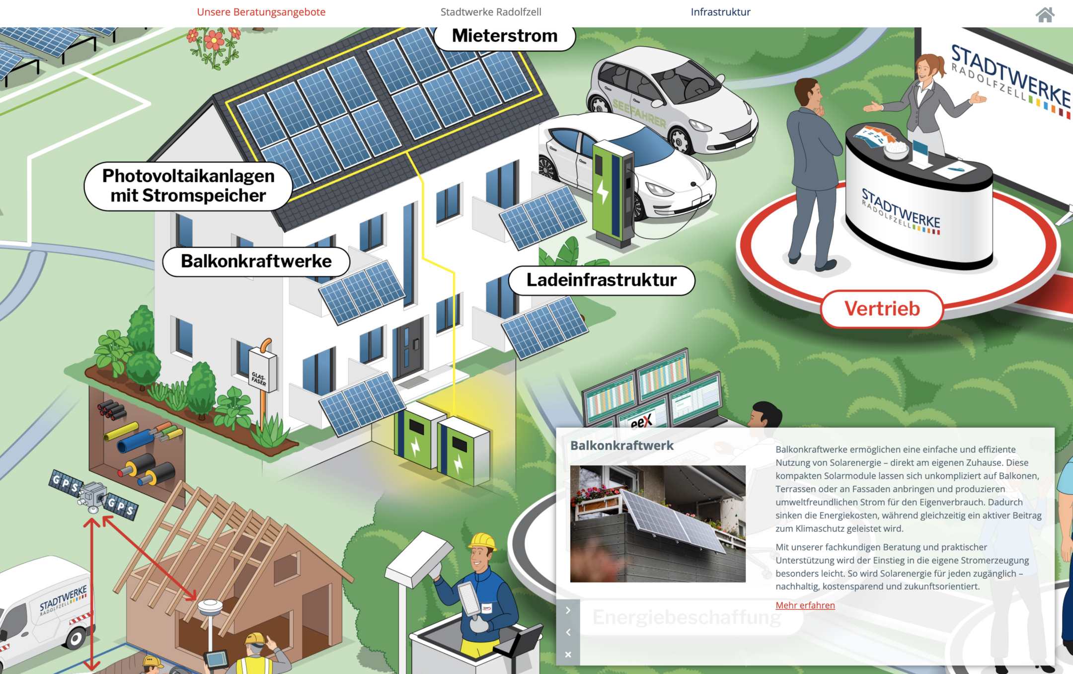 - Webseite – externally as an interactive click image or graphic that provides interested parties with a clear overview of the strategic direction of Stadtwerke Radolfzell online.