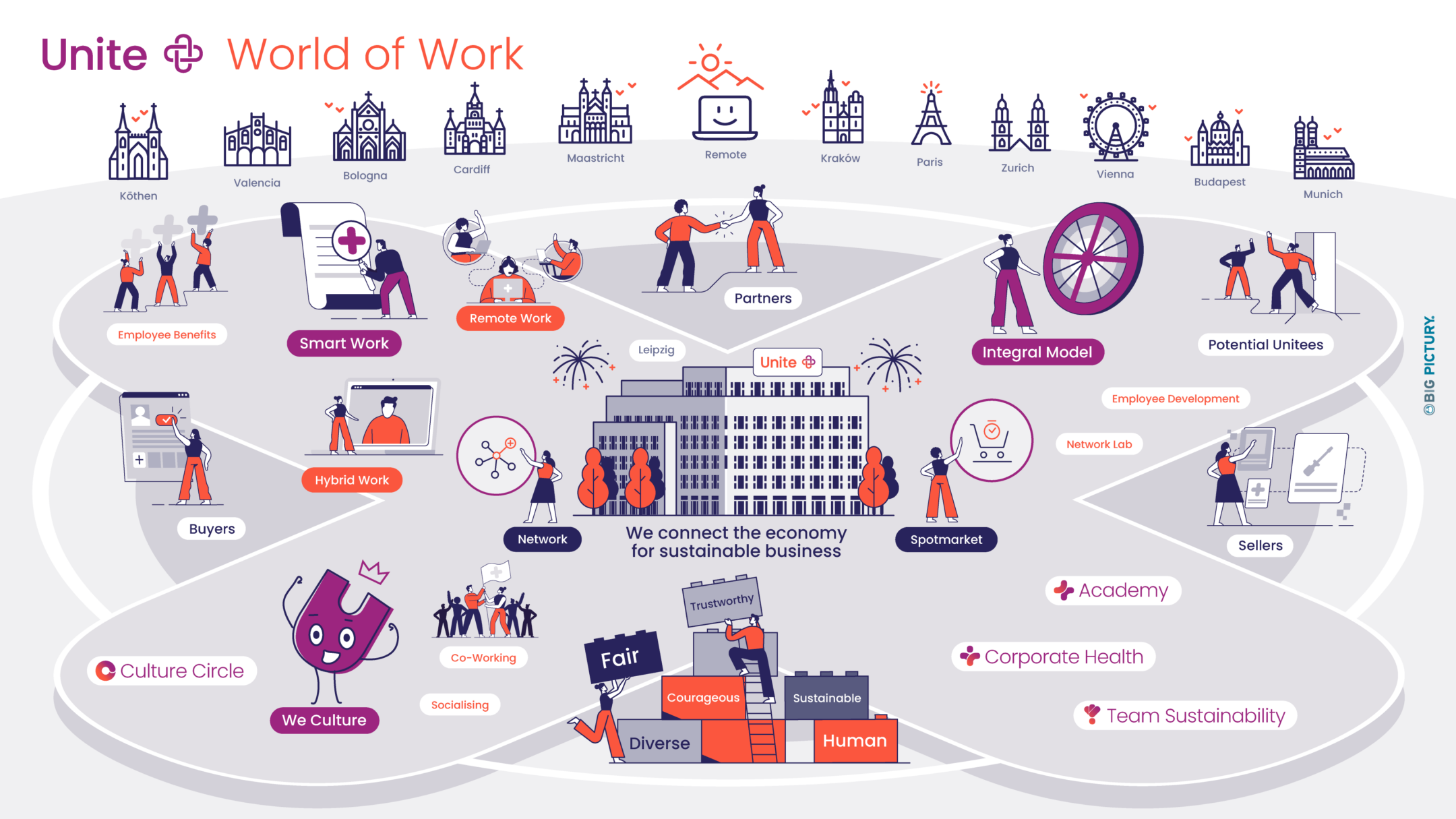 “The topic of New Work is a very diverse one at Unite. The Big Picture helped us to visualize to the guests at our headquarters opening how the different concepts interact on a large scale. We see further areas of application in the recruiting and onboarding of new employees.”