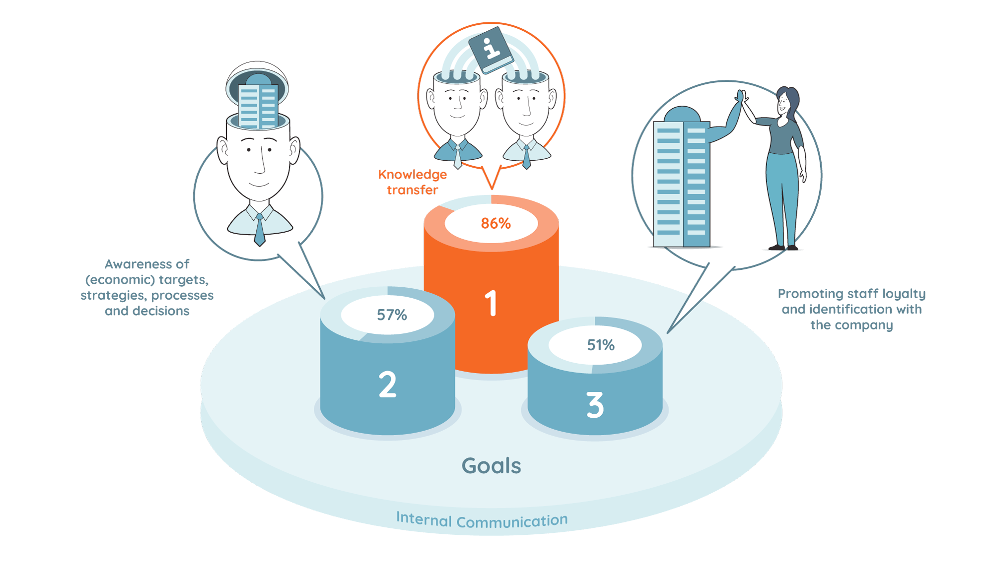 The Corona crisis has caused worldwide upheaval and also forced us to transform our internal communication in a very short space of time. The Haufe Group’s study “Us after Corona” also underlines this point: They found that only 7 percent of the companies surveyed want to stick to using their previous ways of internal communication in the future. However, as also confirmed by the “Trendmonitor for Digital Internal Communication 2022” the goals of internal communication are set. According to the study, keeping staff up to date and transferring knowledge are the most important goals of internal communication for most companies (85.9%). The second most important goal is to raise awareness of (economic) targets, strategies, processes and decisions (57.4%). According to the study, the third most important goal is to promote staff’s sense of loyalty to, and identification with, the company (51.4%).