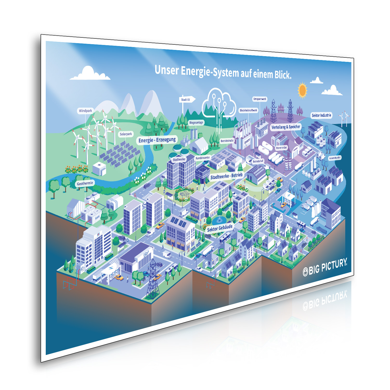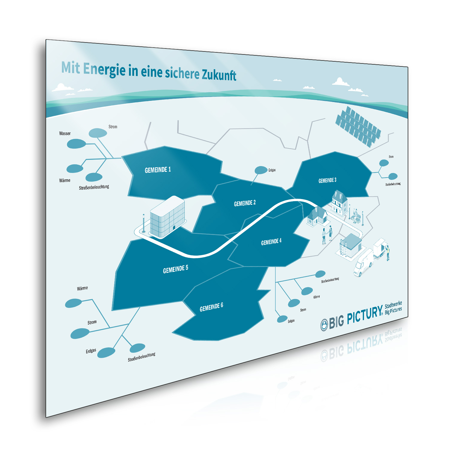 You can now make this valuable work visible – with your Stadtwerke Big Picture, everyone has the same image in front of their eyes. The contents of the Big Picture can include, for example, your company divisions, your specific services for private and bus customers, innovations that you are currently working on, what your contribution to the energy transition looks like, which measures are being implemented to ensure security of supply and much more – we would be happy to advise you on development and application possibilities using a few practical examples.