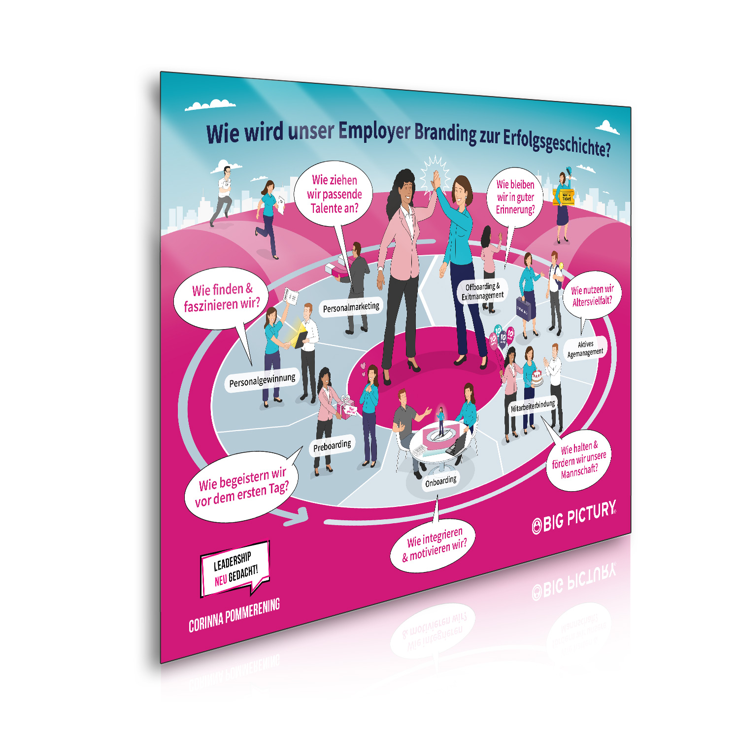 Communicate your complex topic quite simply with a big picture. You can use the picture in personal formats and conversations or as a self-explanatory digital medium.