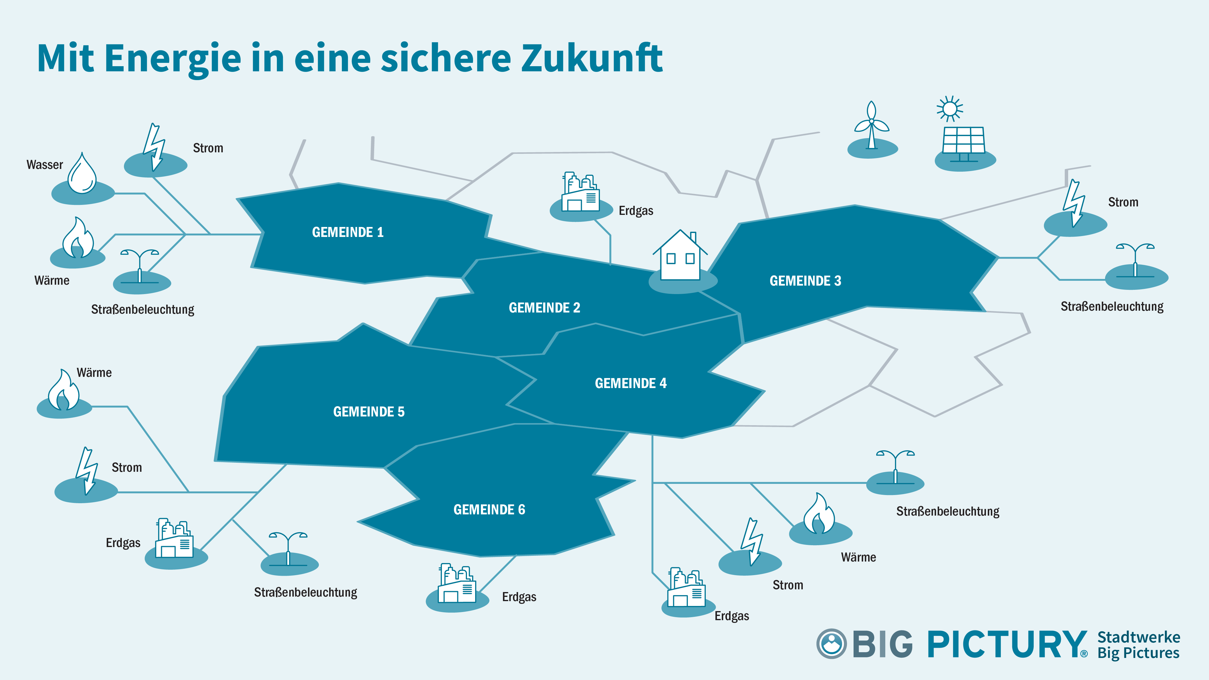 Communicate your complex topic quite simply with a big picture. You can use the picture in personal formats and conversations or as a self-explanatory digital medium.