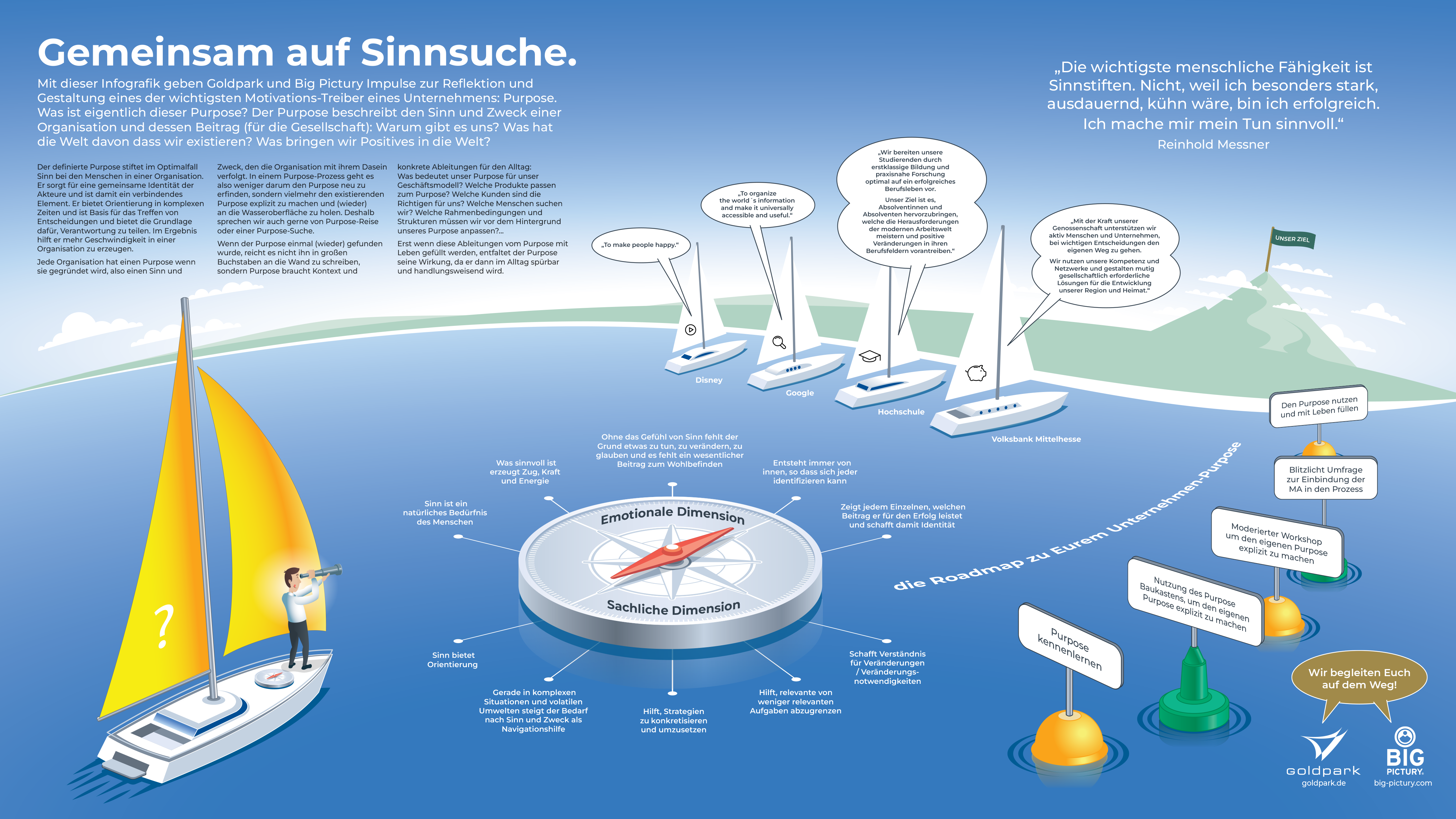 With this infographic, Goldpark and Big Pictury provide impulses for reflecting on and shaping one of the most important motivational drivers of a company: Purpose.