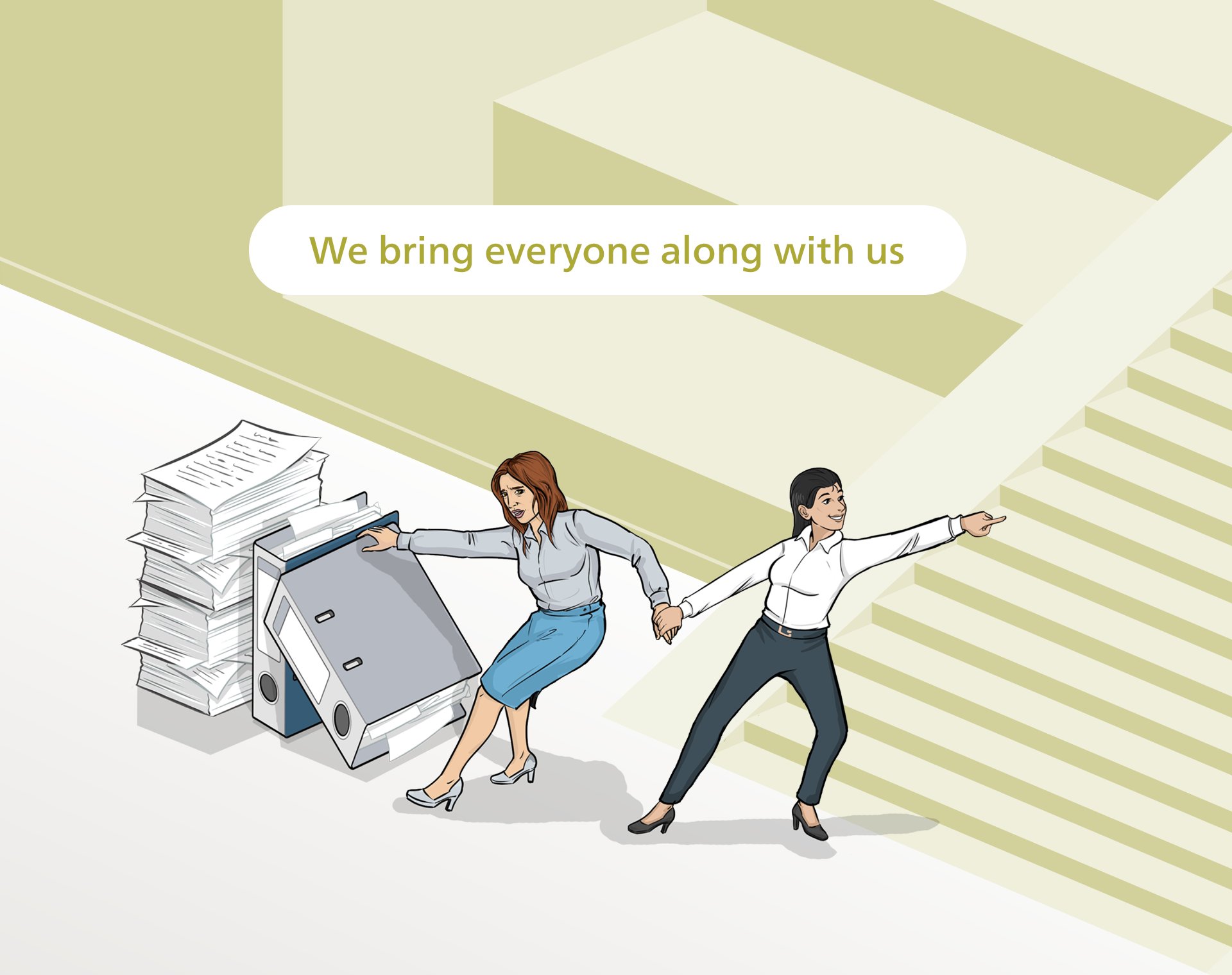 People have different backgrounds, experiences, levels of knowledge and skills. A piecemeal approach cannot do justice to this. Company-wide offers such as training or individual leadership work can help to pick up individuals where they are and from there develop them further as well as support them in the challenges faced in change.