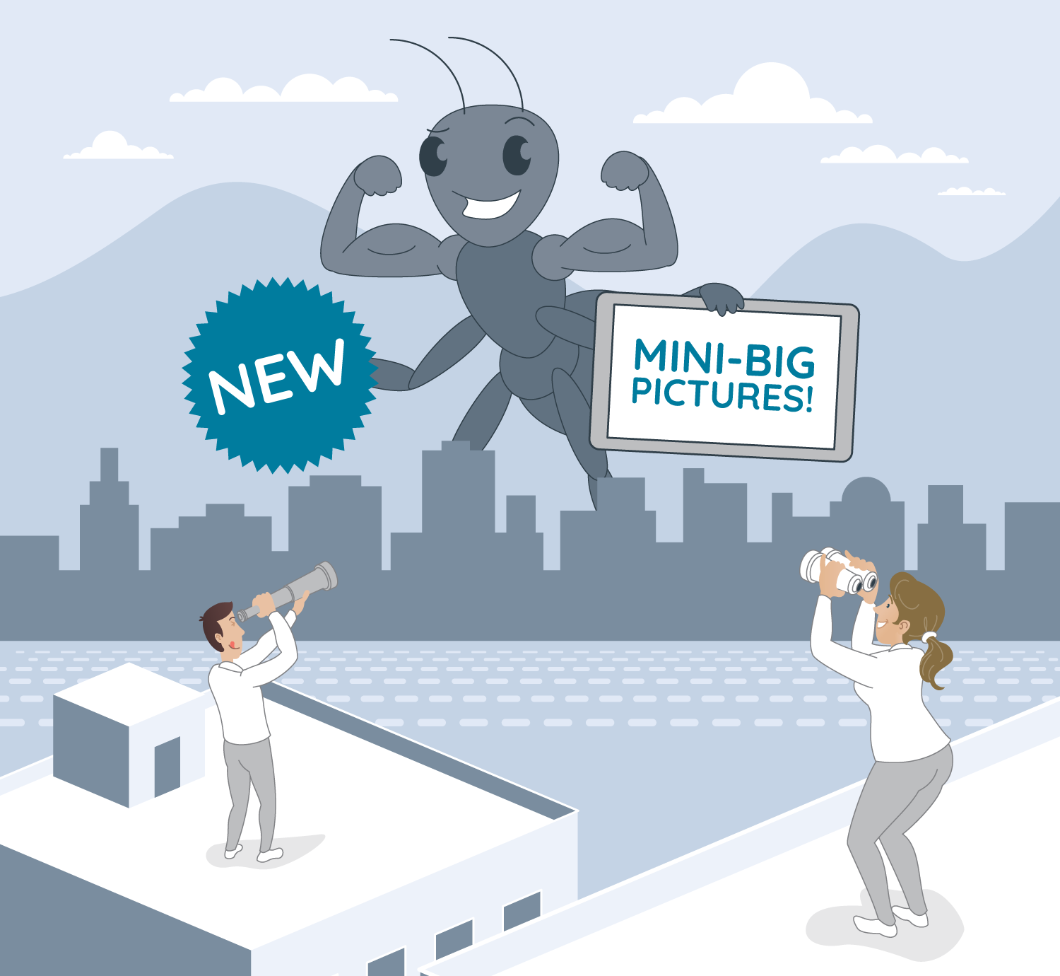 Our Big Pictures bring even the most complex content to the point in a simple and quickly understandable visual way: They condense the broad and concretise the general. Therefore, conceptualising a Big Picture requires a lot of expertise and finesse: because it is not always so easy to filter out the “essence” of what a company wants to communicate with a Big Picture. But time and again, our consultants and our creatives have met this challenge in the past and successfully mastered it in numerous projects! These successes have now motivated us to launch another Big Picture format: Mini Big Pictures.