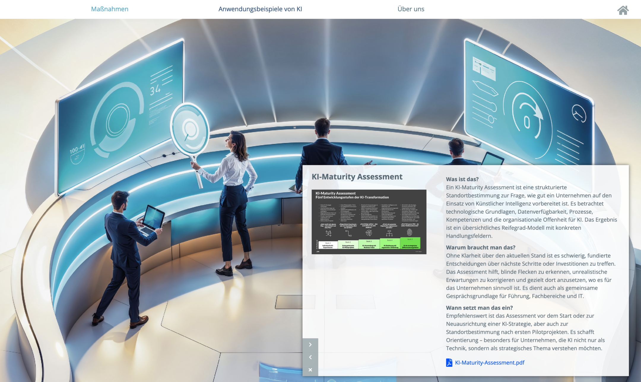 Darin könnt ihr einzelne Bereiche des Bildes anklicken und in kompakten Info-Boxen mehr zu Maßnahmen, Use Cases und Hintergründen erfahren.
