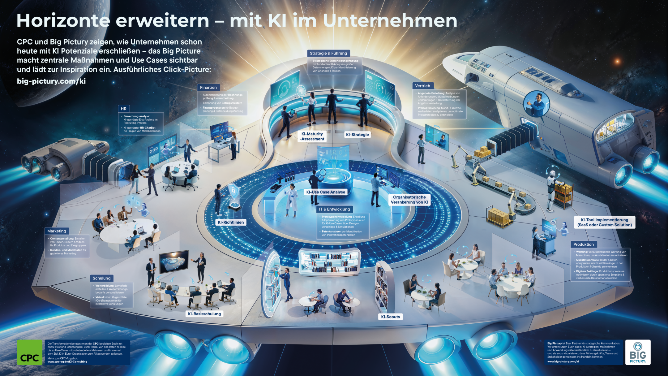 Genau dafür haben wir gemeinsam mit der Transformationsberatung CPC ein KI Big Picture entwickelt: