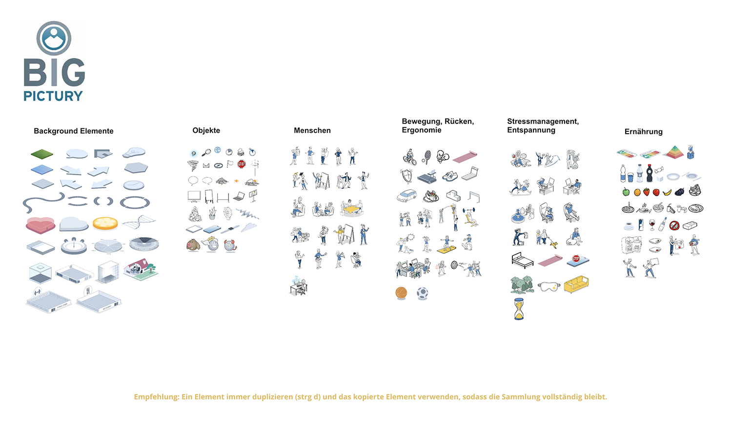 Mit dem Workshop-Set „Digitaler Gesundheitstag“ erhalten Trainer ein visuell aufbereitetes Paket mit Bildern und Elementen aus den Bereichen: