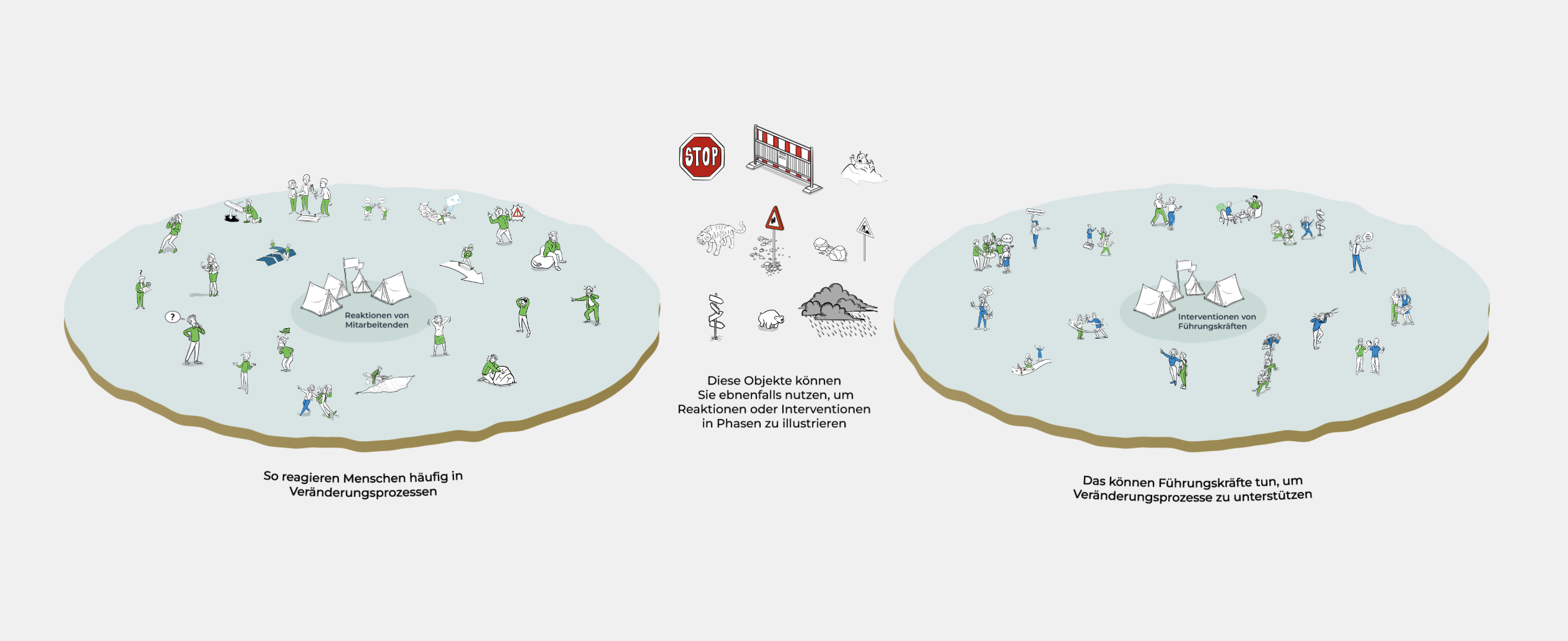Erfahre, wie man die Veränderungskurve als grundlegendes Modell nutzen kann, um die Bedürfnisse von Menschen in Veränderungen zu verstehen, Widerstände zu überwinden und eine Kultur des Wandels zu schaffen. Entlang der verschiedenen Phasen der Veränderung – von der Einführung neuer Ideen über die Umsetzung bis hin zur Stabilisierung – schaffen wir mit dieser Workshop Box ein inspirierendes Set Up für Reflexion, Auseinandersetzung und Perspektivwechsel. Teilnehmende werden dazu animiert, sich mit den verschiedenen Emotionen und Haltungen der Betroffenen in der jeweiligen Veränderungsphase auseinanderzusetzen und Kompetenz im Umgang damit aufzubauen.