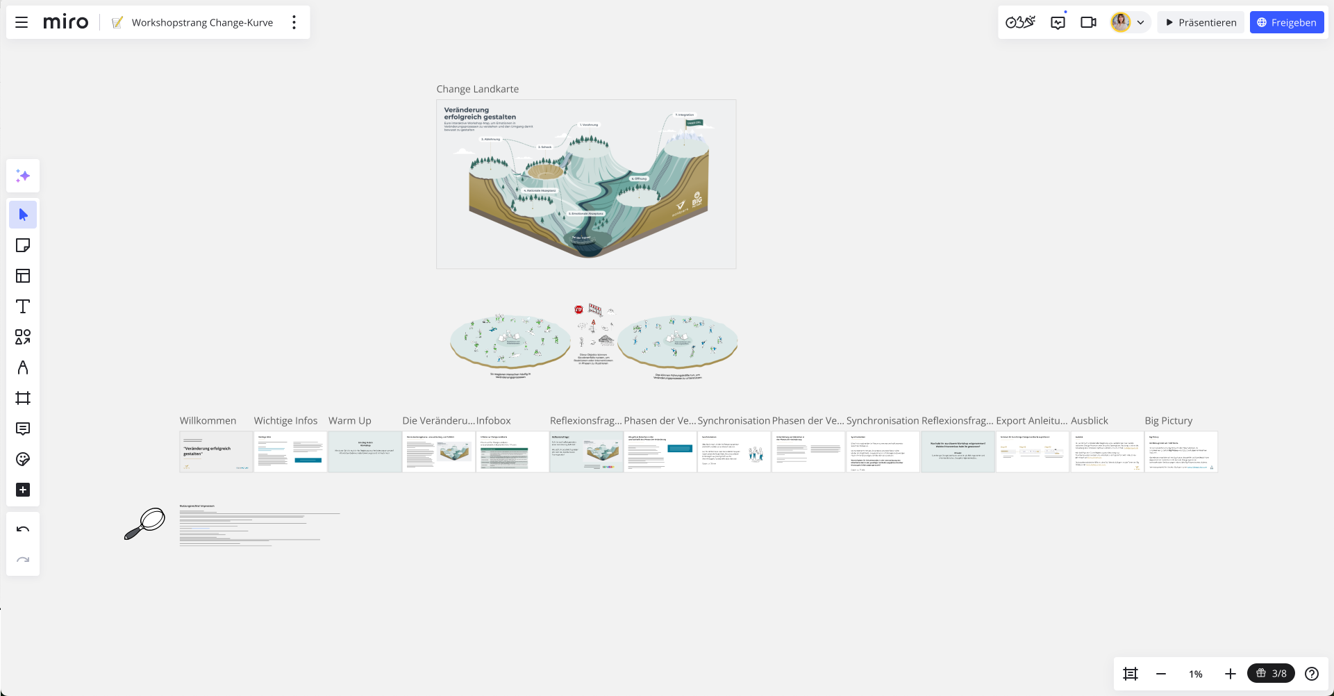 • Gestalteter Aufbau eines möglichen Workshops im Miro-Board