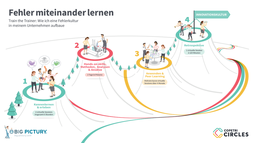 Der COPETRI Circle New Work/Fehlerkultur konzentriert sich darauf, eine neue positive Perspektive auf Fehler zu fördern und Handlungsempfehlungen für Unternehmen zu entwickeln, um schnelles Lernen und Weiterentwicklung zu ermöglichen. Für das Train the Trainer Programm, das in diesem Zusammenhang entwickelt wurde, haben wir einen Übersichtspfad entwickelt.
