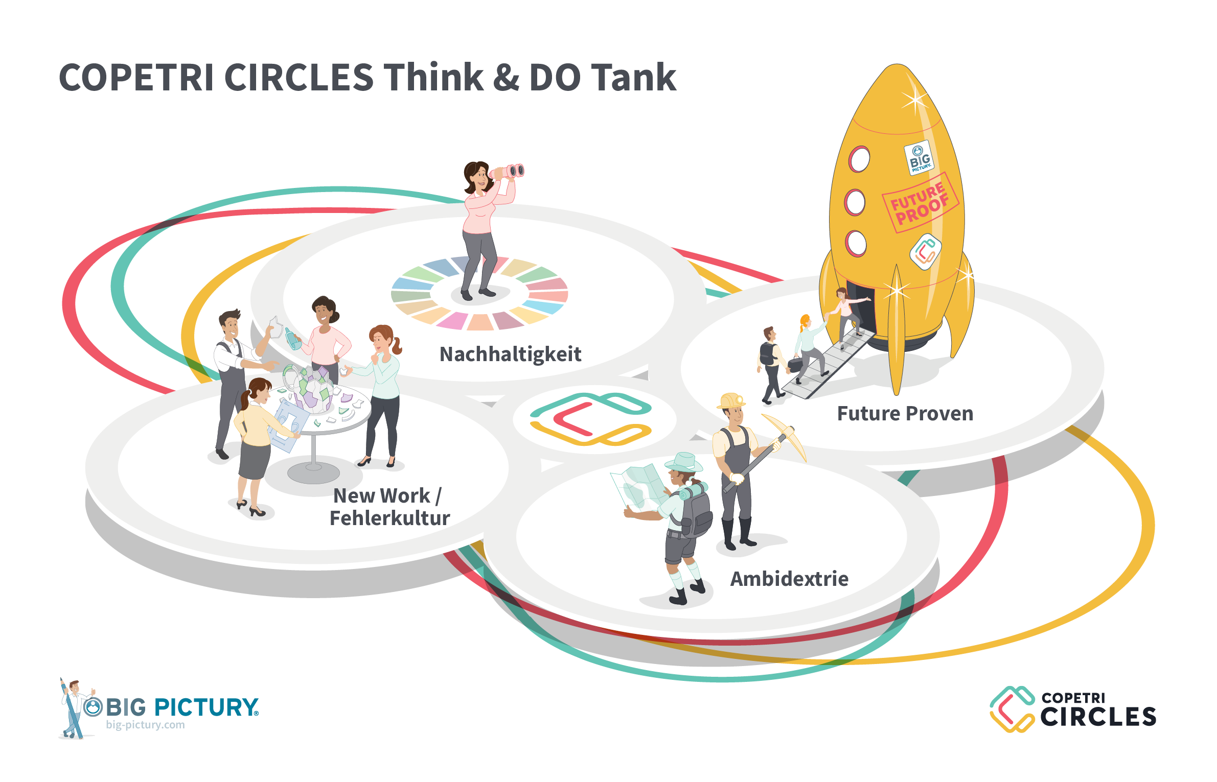 Die COPETRI Circles verstehen sich als agiler Think & Do Tank. Hier kommen Vordenker*innen, Vormacher*innen und Themenexpert*innen aus Wissenschaft und Praxis zusammen, um über drängende Fragen zur nachhaltigen Wettbewerbsfähigkeit und Zukunftsfähigkeit von Unternehmen zu diskutieren und praxisorientierte Lösungsansätze aufzuzeigen. Ziel der Circles ist es, konkrete Handlungsempfehlungen und umsetzbare Lösungen insbesondere für den Mittelstand im deutschsprachigen Raum zu erarbeiten.