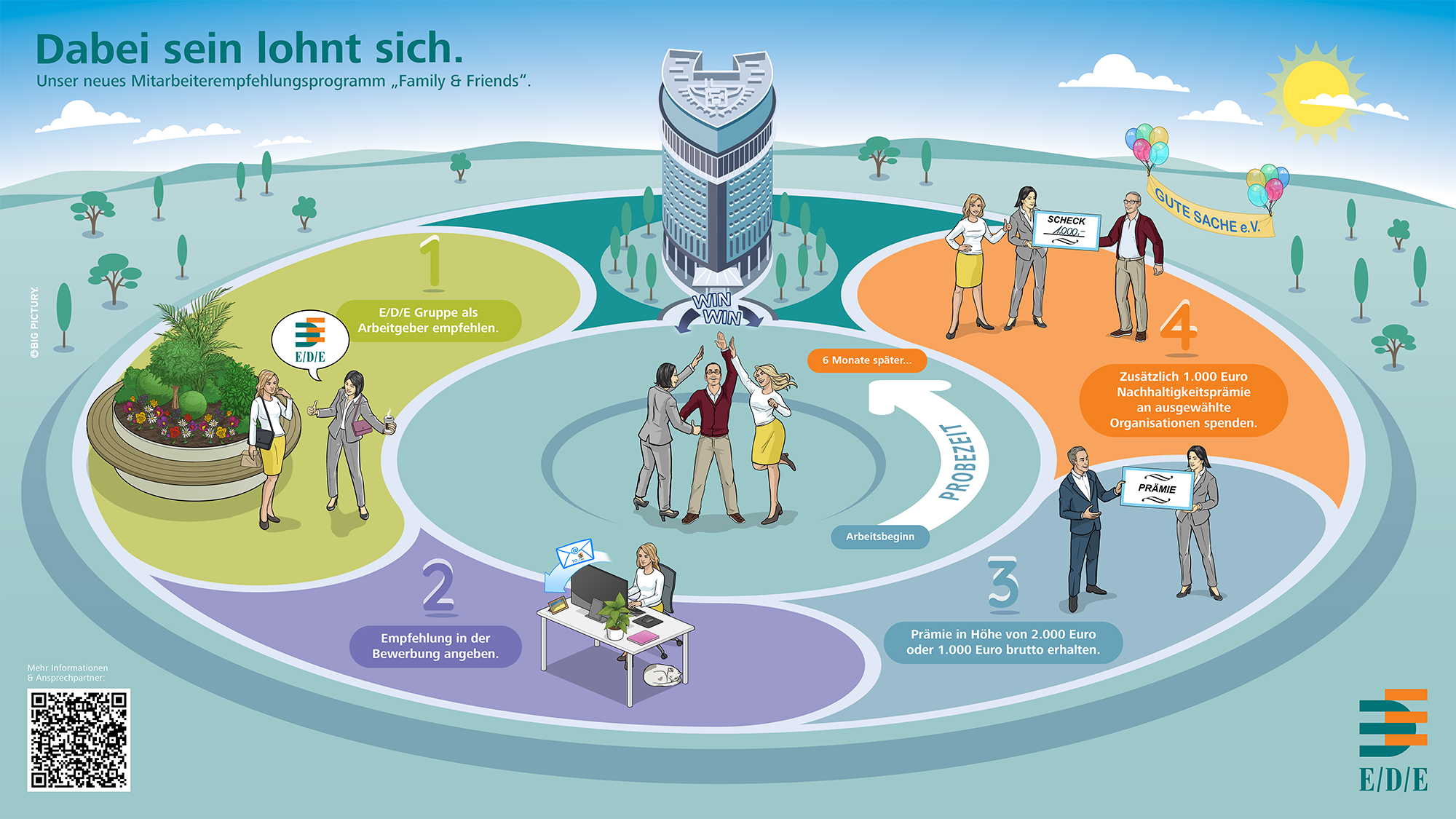 Um ihr neues Mitarbeiterempfehlungsprogramm bekannt zu machen, hat sich das Einkaufsbüro Deutscher Eisenhändler (E/D/E) entschieden, ein Big Picture einzusetzen.