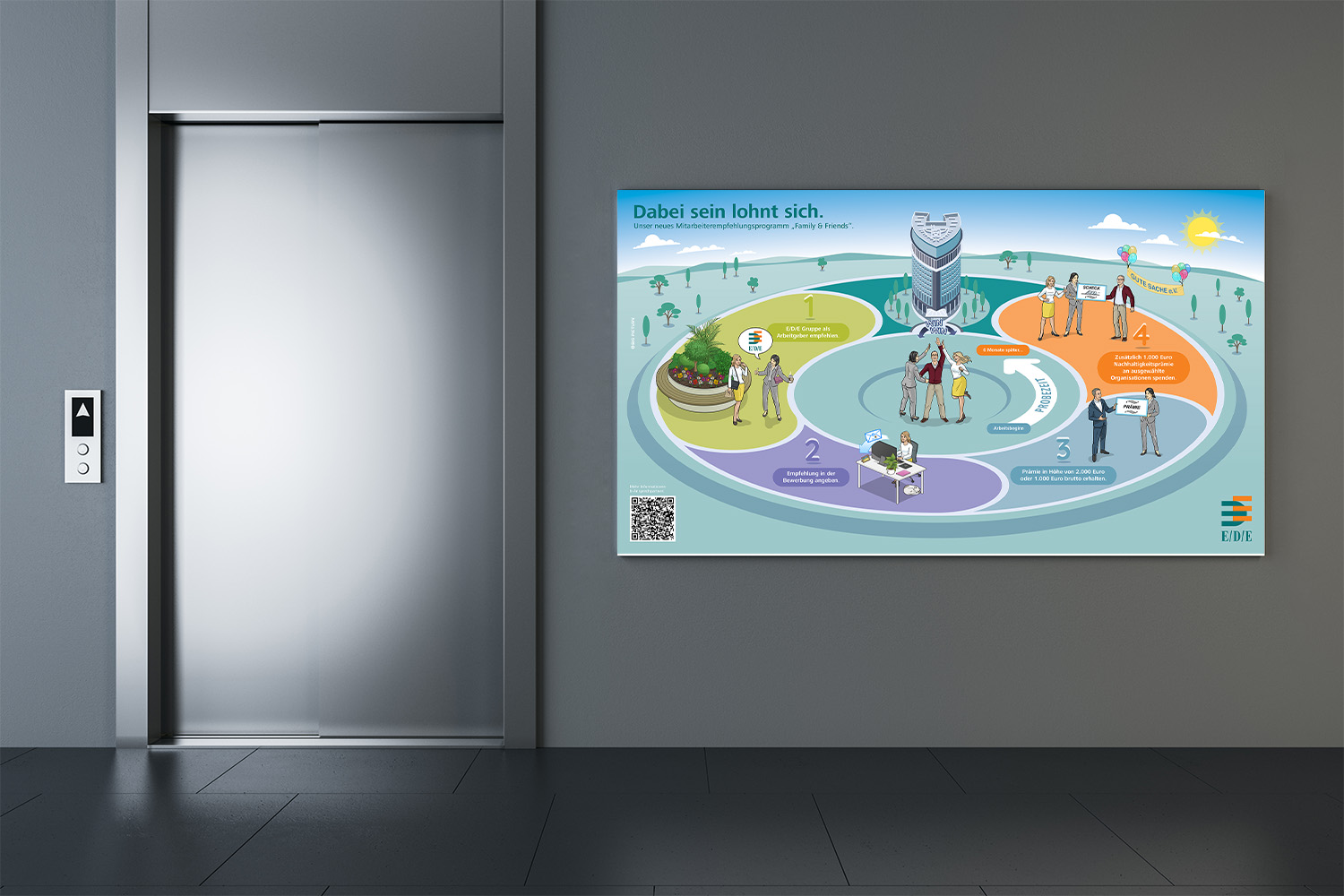 Um ihr neues Mitarbeiterempfehlungsprogramm bekannt zu machen, hat sich das Einkaufsbüro Deutscher Eisenhändler (E/D/E) entschieden, ein Big Picture einzusetzen.
