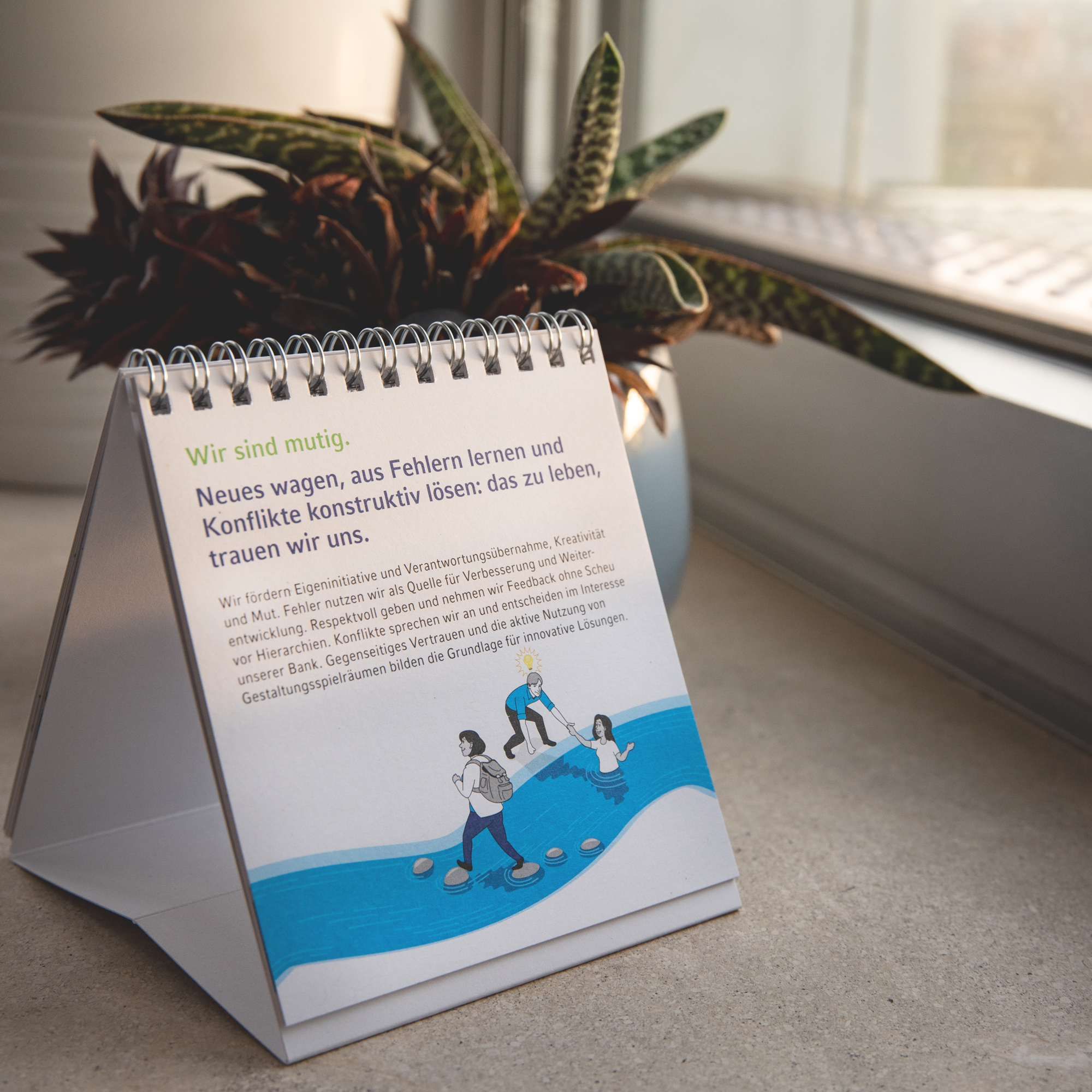 Die NRW.BANK hat ein neues Leitbild für all ihr unternehmerisches Handeln entwickelt. Unter der Überschrift „WIR für NRW“ bringt die Förderbank für Nordrhein-Westfalen auf den Punkt, was sie täglich antreibt: Gutes bewirken für die Menschen, Unternehmen und Kommunen in NRW. Um ihren Mitarbeitenden sowie auch potenziellen Bewerber*innen ihren Purpose zu vermitteln, entwickelten wir ein Big Picture, in dem das neue Unternehmensleitbild sowie seine sechs Grundsätze visuell umgesetzt wurden.