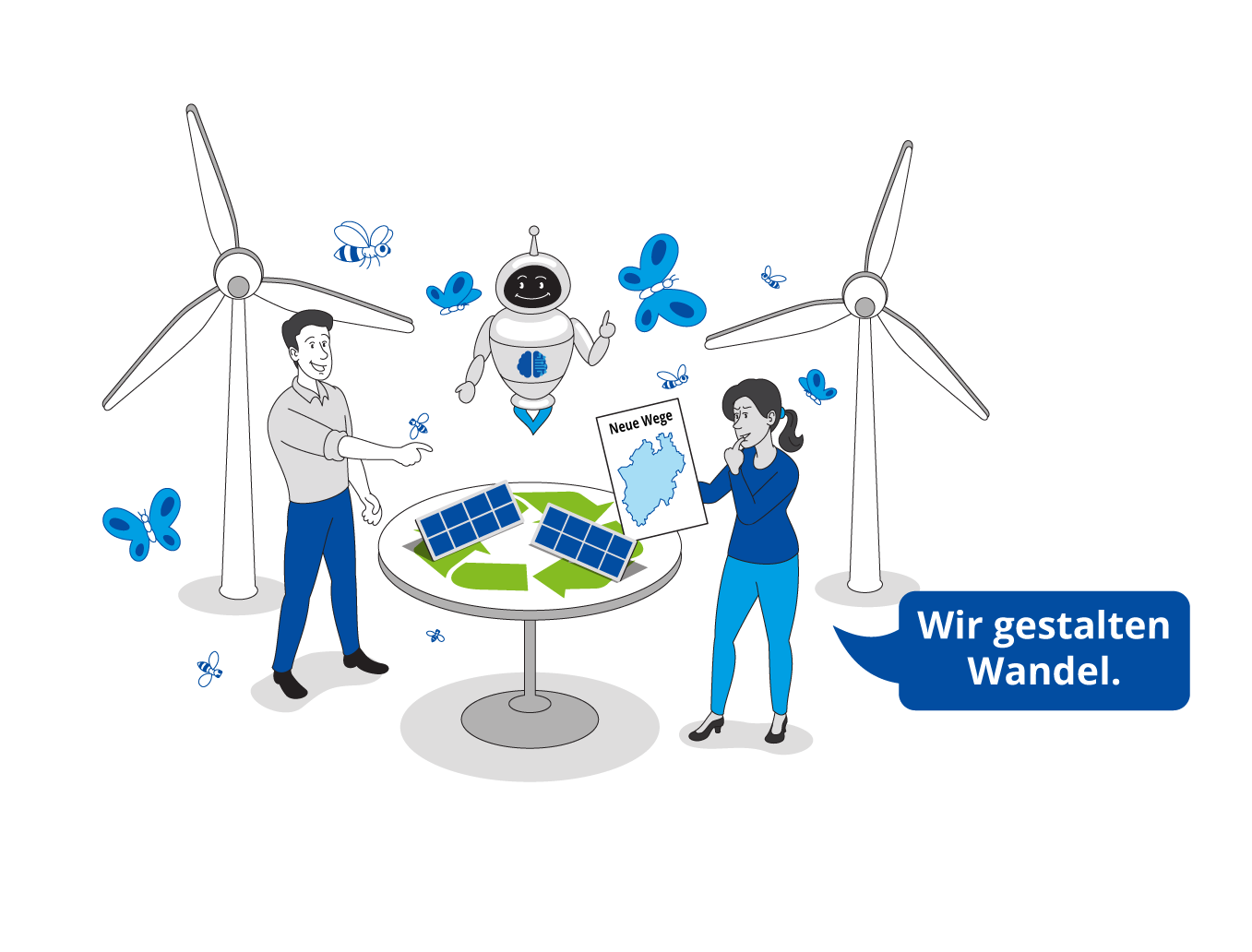 Die NRW.BANK hat ein neues Leitbild für all ihr unternehmerisches Handeln entwickelt. Unter der Überschrift „WIR für NRW“ bringt die Förderbank für Nordrhein-Westfalen auf den Punkt, was sie täglich antreibt: Gutes bewirken für die Menschen, Unternehmen und Kommunen in NRW. Um ihren Mitarbeitenden sowie auch potenziellen Bewerber*innen ihren Purpose zu vermitteln, entwickelten wir ein Big Picture, in dem das neue Unternehmensleitbild sowie seine sechs Grundsätze visuell umgesetzt wurden.