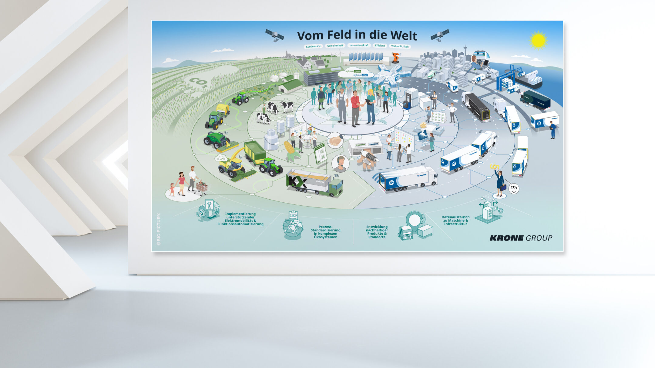 Gemeinsam mit der KRONE GROUP haben wir ein visuelles Gesamtbild entwickelt, das Vision, Strategie und Handlungsfelder auf einen Blick zeigt – und so alle Mitarbeitenden wirksam informiert und motiviert.