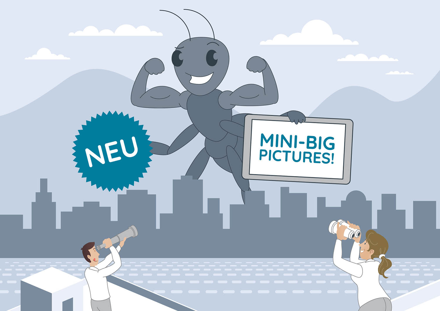 Seit jeher zeichnen sich unsere Big Pictures dadurch aus, dass sie auch komplexeste Inhalte einfach und schnell verständlich visuell auf den Punkt bringen: Sie komprimieren das Weitschweifige und konkretisieren das Allgemeine. Beim Konzipieren und Erstellen eines Big Pictures ist deshalb viel Fingerspitzengefühl und Dialog-Expertise gefragt: Denn es ist gar nicht immer so einfach, die „Essenz“ dessen herauszufiltern, was ein Unternehmen mit einem Big Picture kommunizieren möchte. Doch immer wieder haben unsere Berater und unsere Kreativen in der Vergangenheit diese Challenge angenommen und in zahlreichen Projekten erfolgreich gemeistert! Diese Erfolge haben uns nun dazu motiviert, ein weiteres Format der Big Pictures ins Leben zu rufen: Mini Big Pictures.